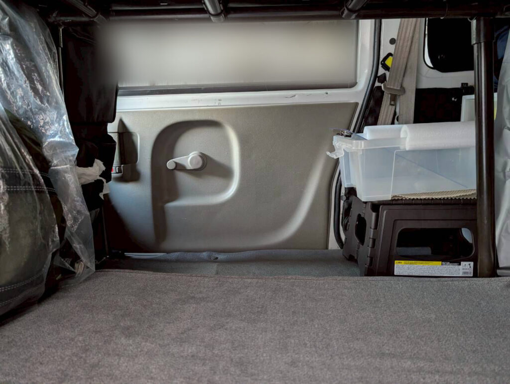 しかし荷室の可動窓はリアシート横にしかないので、荷室にトイレを置く場合は自動的にスライドドア近くとなります。