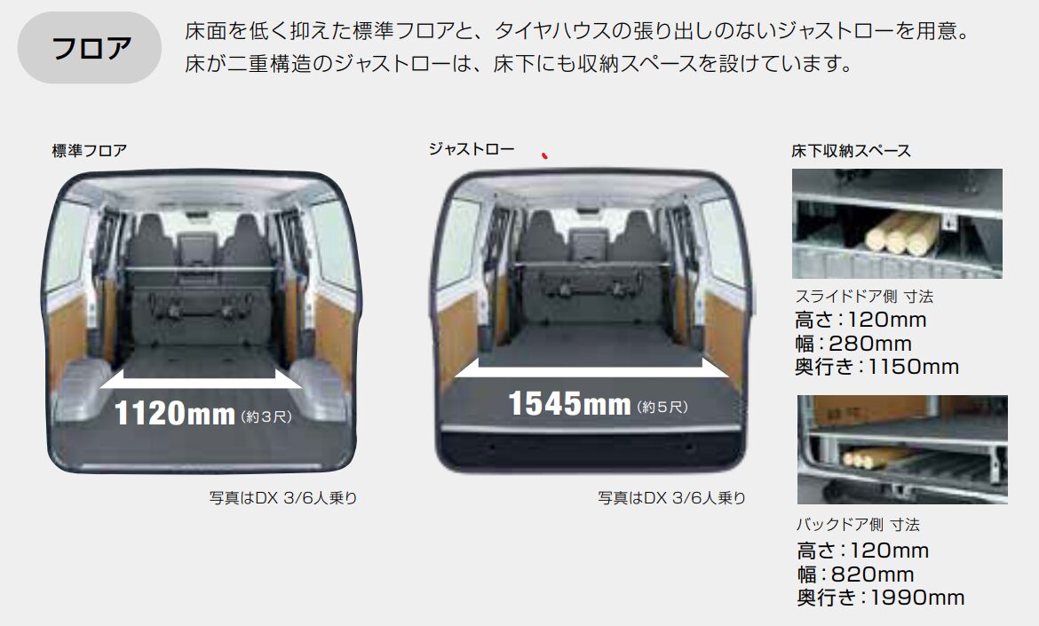 ※低床フロアを自称していますが、実際はハイエースと変わりません