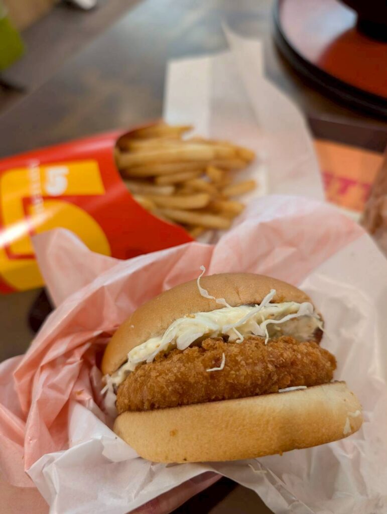 なめくじは食べる機会が滅多にないロッテリアで、奥さんおすすめのエビバーガーをセットにして単品チーズバーガーを追加。