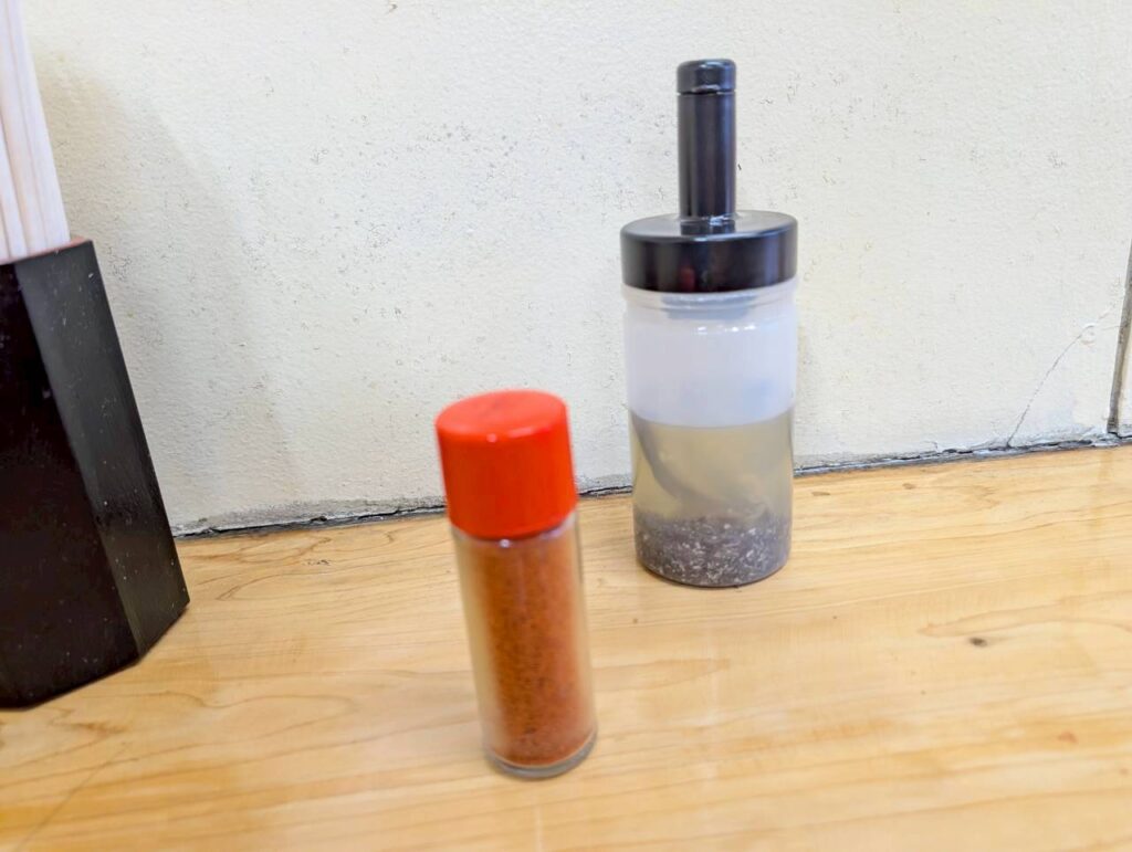 卓上の味変用イリコオイルをかけると、やや粗野なイリコ感が足されてまた良いですね。