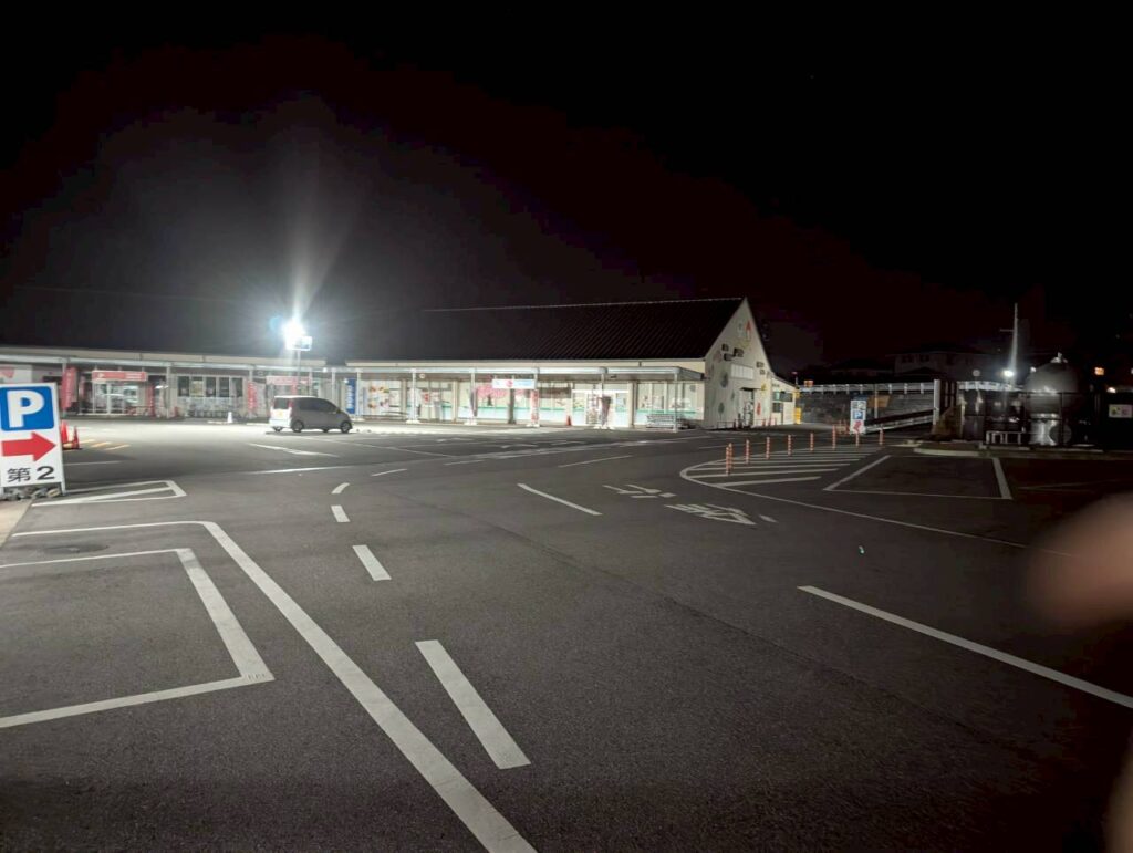 ちょうど午後7時、本日の宿泊地である「道の駅 滝宮(たきのみや)」へ到着です。