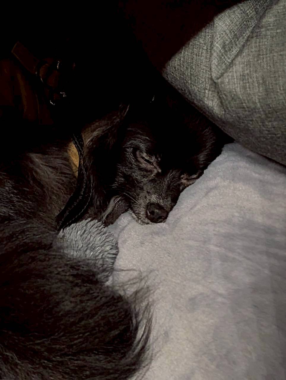 後ろでは旅でお疲れのイッヌがすでにすやすやモード。