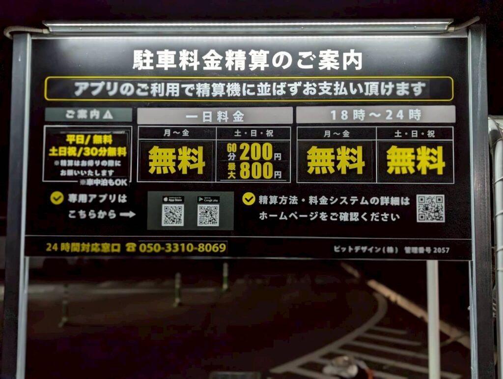駐車場代は当日¥8,000以上のお買い物で無料になりますが